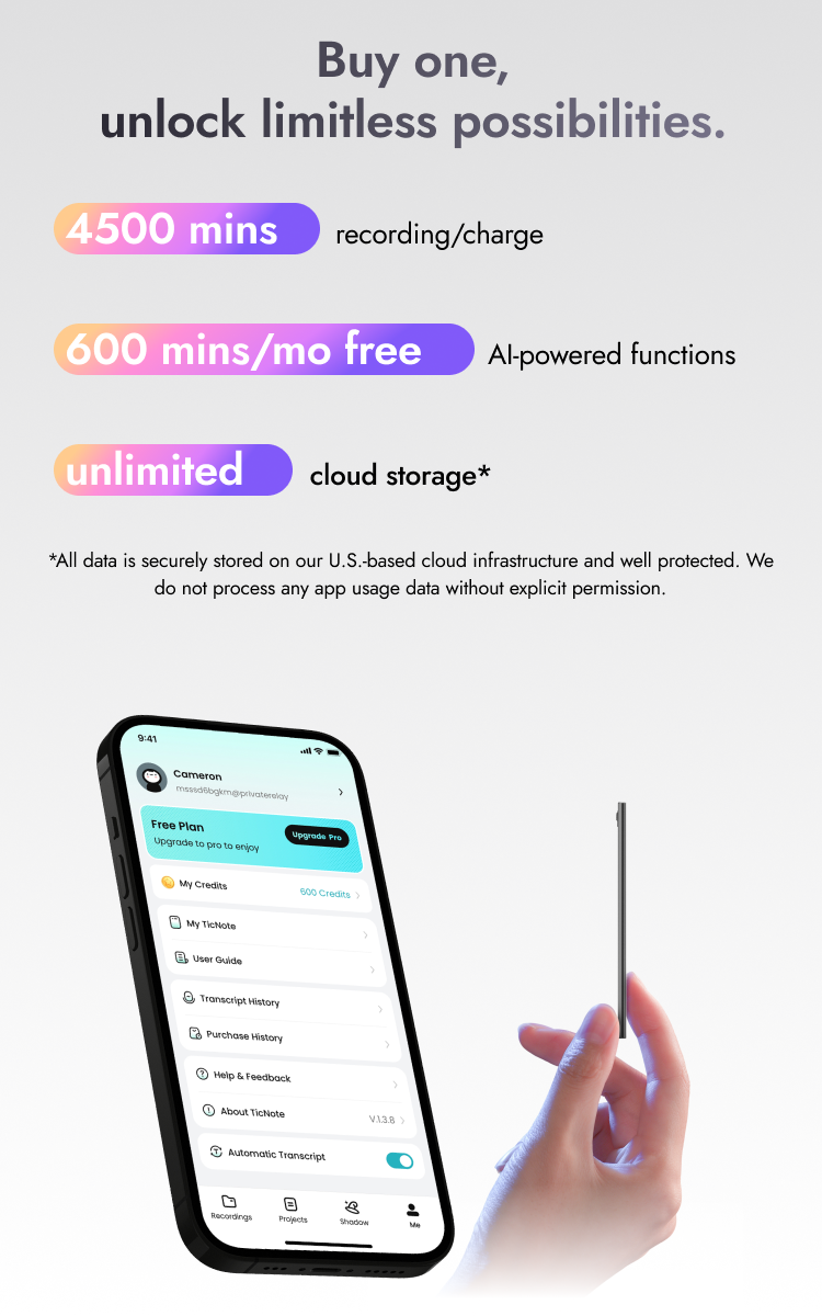 Shadow* is the built-in AI agent that transforms TicNote from a simple recorder into a powerful thinking and organizing tool.